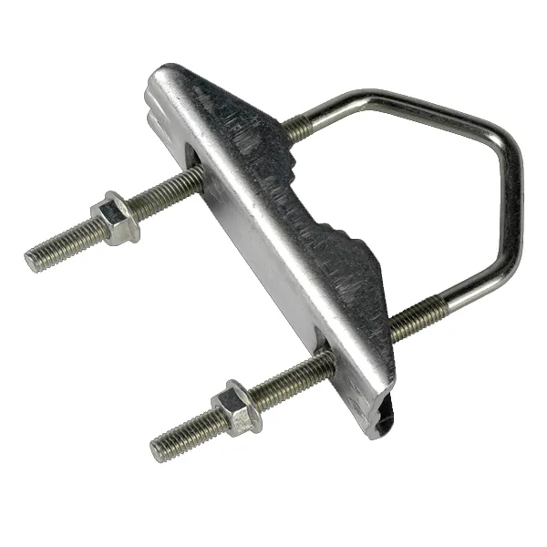 Abraçadeira composta por parafuso em "U" e mordaça, que pode ser instalada numa peça mecânica para fixar um mastro.