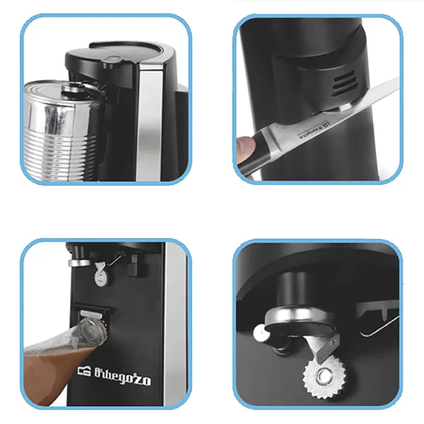 Abre latas elétrico Potência: 60W Multifuncional: Abre-latas; Abre-Garrafas; Afiadora Ignição automática ao detetar a pressão Cabeça com lâmina de aço inoxidável removível para facilitar a limpeza Tampa de fixação magnética Decoração de aço inoxidável Com armazenamenrto do cabo Tensão: 230V ~ 50Hz