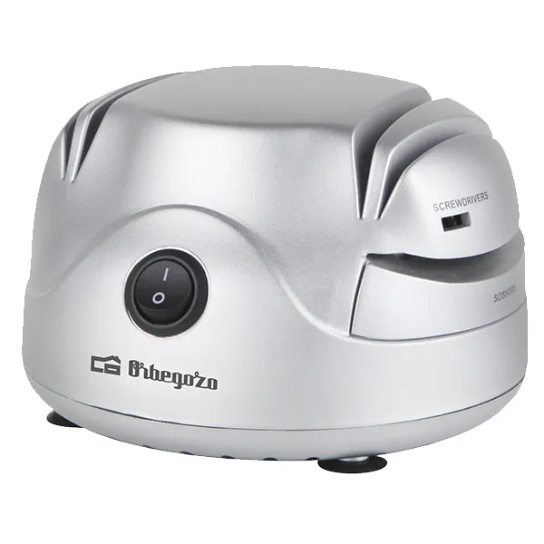 Potência: 60W Afiador de pedra com sistema de 2 etapas para qualquer tipo de lâmina (com exceção de facas de cerâmica) Afia facas de lâmina simples Afia tesouras Repara chaves de pasafusos Ventosas para maior estabilidade Botão para recolher automáticamente o cabo Interruptor de ligação Vontagem: 220 – 240V ~ 50 / 60 Hz
