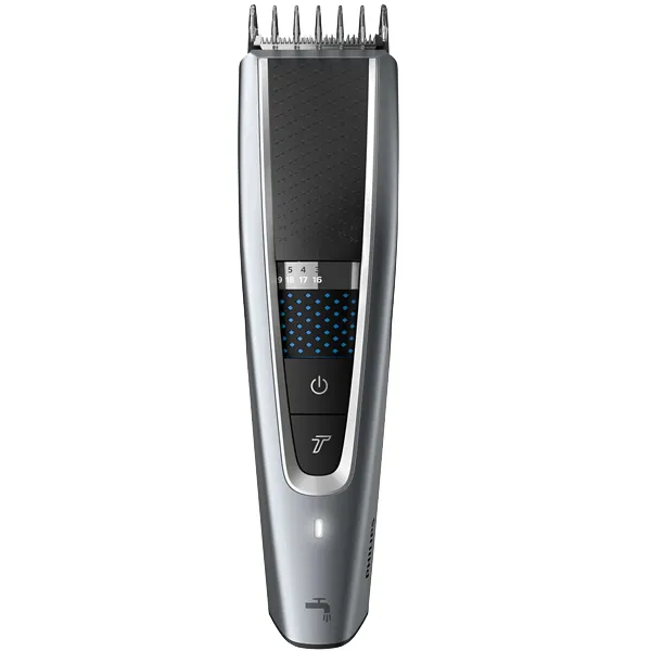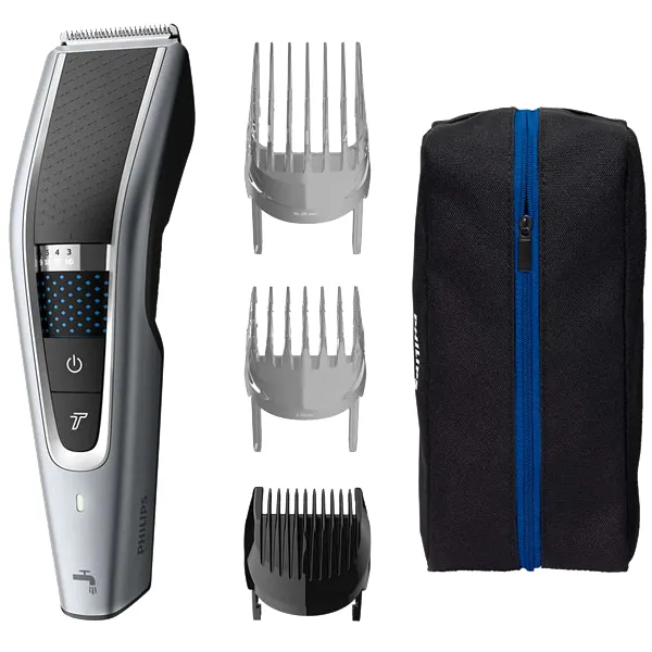 Tipo de bateria: Iões de lítio Acessórios: Escova de limpeza; 1 pente para barba; 2 pentes para cabelo (grande e pequeno); Bolsa flexível Largura lâmina: 41 mm Número de regulações de comprimento: 28 Precisão (tamanho dos intervalos): De 1 mm Elemento de corte: Lâminas em aço inoxidável Intervalo de regulações de comprimento: De 0,5 a 28 mm Sem necessidade de manutenção: Não necessita de lubrificação Limpeza: 100% lavável Operação: Utilização com cabo e sem cabo