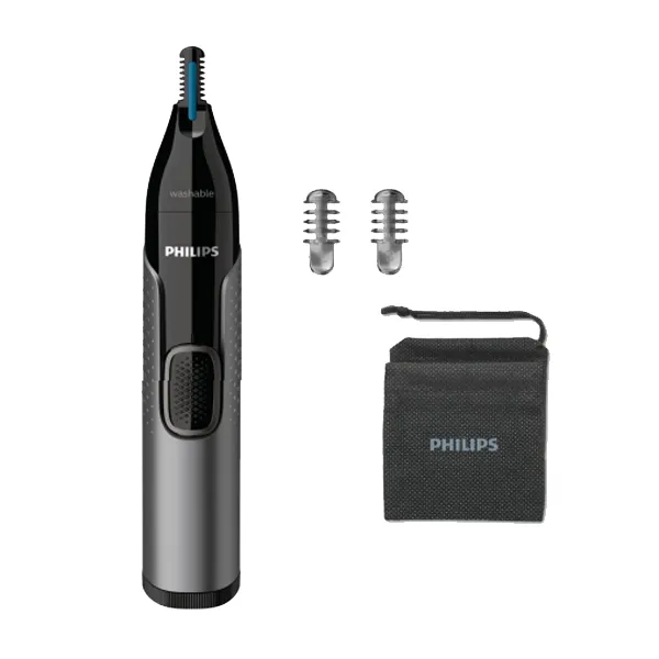 Lâminas de alto desempenho: Para um aparar suave Elemento de corte: Lâminas em aço inoxidável Acessórios: Pente: Pente para sobrancelhas, Pente de precisão de 5 mm; Bolsa de viagem Limpeza: Lavável Húmido e seco: Pode ser utilizado no chuveiro Não necessita de lubrificação Cor: Cinzento Pega: Pega e manuseamento ergonómicos Tipo de bateria: AA