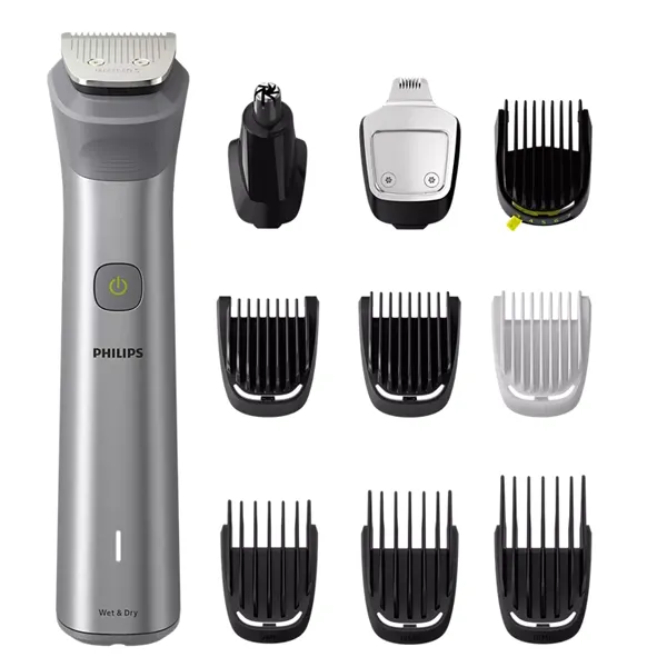 Acessórios de estilo: Aparador em aço; Aparador de precisão em aço; Aparador para o nariz e orelhas; 2 pentes curtos; Pente ajustável de 3-7 mm; 3 pentes para cabelo; 1 pente para pelos corporais