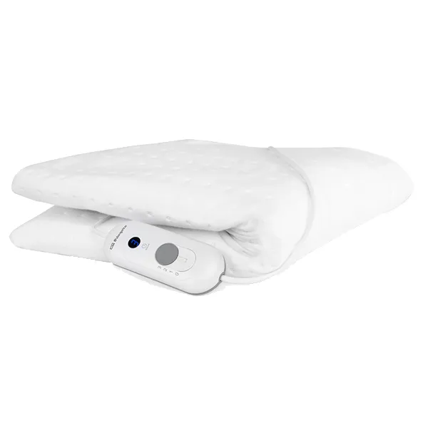 Potência: 60 W. Sistema de aquecimento rápido. Calor persistente. 3 niveis de potência. Comando extraível para controlar o funcionamento. Sistema de calor extra nos pés Sistema de ajuste ao colchão Superficie suave, transpiravel e agradavel ao tato Acabamento textil acolchoado. Lavável à mão e na máquina Desliga automáticamente ao fim de 3 horas de utilização Medidas: 150 x 80 cm.