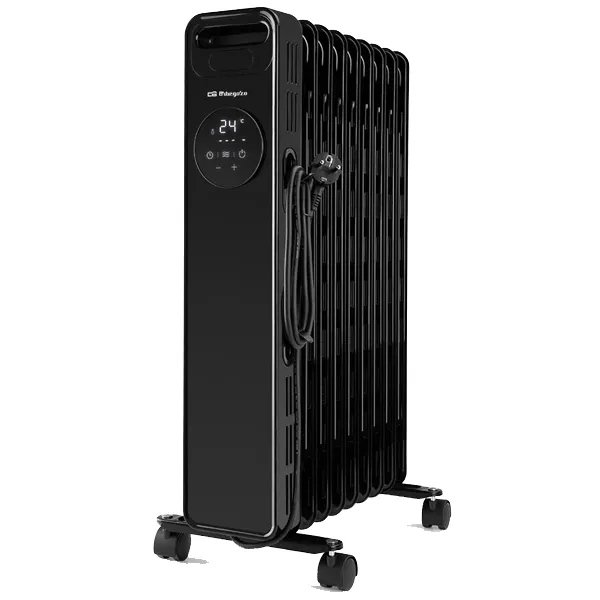 Display LED com painel de toque Sistema de proteção contra sobreaquecimento Dispositivo de segurança anti-inclinação Temporizador desligado e ligado 24horas Pega para fácil transporte Recolhe cabos Controlo de temperatura 7 – 35ºC Controlo remoto Rodas articuladas multi-direcionais Potência máxima: 2000W 9 elementos de aquecimento com alta inércia térmica 3 níveis de calor: 800 – 1200 – 2000W Medidas com rodas: 24x64x39cm Medidas sem rodas: 12,5×59,5x39cm