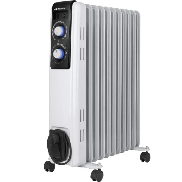 Potência máxima 2500W 11 elementos de aquecimento com alta inércia térmica Termóstato de controlo Sistema de protecção contra sobreaquecimento Fácil manuseamento 3 níveis de calor: 1000W – 1500W – 2500W Asa para transporte Recolhe cabos Luzes indicadoras de funcionamento LED Rodas multi direcionais Dimensões com rodas (LxAxC): 250x630x395mm Dimensões sem rodas (LxAxC): 140x590x395mm Tensão: 230V ~ 50Hz