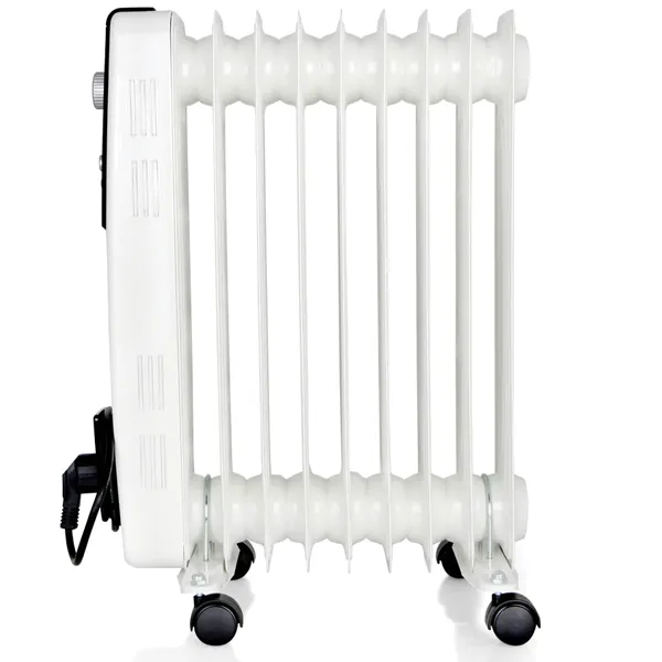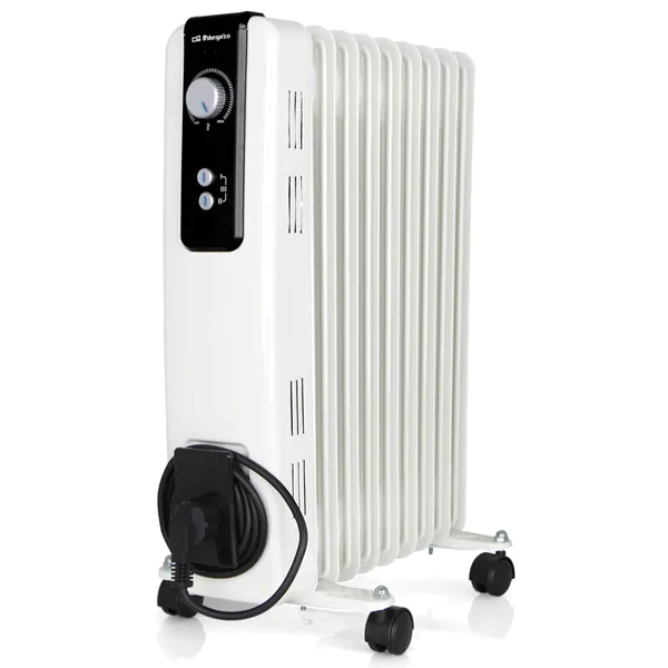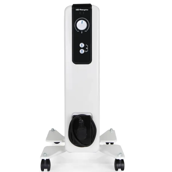 Termostato regulável. Sistema de proteção contra superaquecimento. Manuseio fácil. Alça de transporte Armazenamento de cabo. Luzes LED de funcionamento. Rodas de gire multidirecionais. Conexão: 230 V ~50 Hz. Potência máxima 2000W 9 elementos de aquecimento 3 níveis de potência: 800-1200-2000W Medidas com rodas: 28x55x39,5cm Medidas sem rodas: 12x50x39,5cm