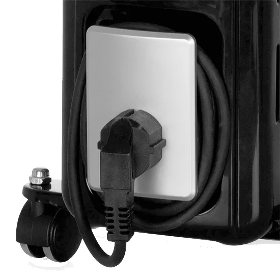 Potência máxima: 1000W 5 elementos de aquecimento com alta inércia térmica 2 potências de aquecimento: 500 – 1000W Termóstato de controlo Sistema de protecção contra sobreaquecimento Fácil de usar Pega de transporte Recolhe cabos Luzes indicadores LED Rodas articuladas multi-direcionais Medidas com rodas (LxAxP): 280x630x340mm Medidad sem rodas (LxAxP): 140x590x255mm Conexão: 230V ~ 50Hz