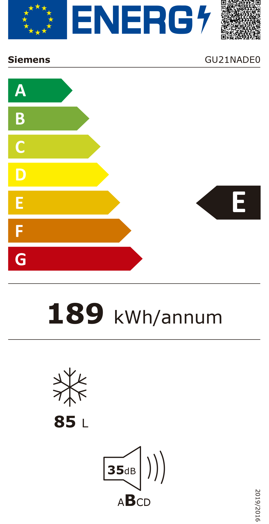 Consumo anual de energia (kWh/ano): 189 kWh/ano