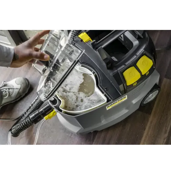 A embalagem contém: Bocal de estofos com alça integrada; Mangueira de pulverização/aspiração, 2.5 m; Tubo de aspiração