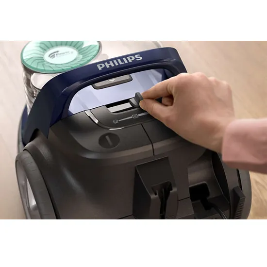 Controlo de potência: Eletrónico no aparelho Raio de ação: 9 m Pega de transporte: Topo e frente Tipo de tubo: Tubo telescópico metálico de 2 peças Encaixe do tubo: ActiveLock Tipo de rodas: Borracha Acessórios: Escova TriActive+; Escova para móveis; Escova para pavimentos; Bico; Escova integrada Arrumação de acessórios: No clipe do tubo Potência de entrada (IEC): 650 W Nível da potência sonora: 71-76 dB Capacidade de pó: 1,5 L Filtro exaustor: Filtro antialérgico Filtro do motor: Filtro lavável Peso do produto: 4,5 kg Dimensões do produto (CxLxA): 412 x 280 x 280 mm Cor: Azul petróleo