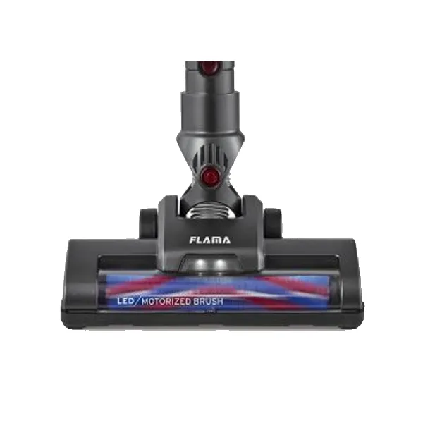 Cor. Vermelho e Cinza Formato: Vertical Potência máxima: Lithium 22.2V Potência de sucção: 120W Acessórios: Suporte de parede – Ponteira longa – Escova para sofás Nível sonoro: 65 Db Pavimento duro Tapete e carpete Retenção de pó Níveis de filtragem: 3 Filtro: HEPA CYCLONE Saco: Depósito Transparente Fácil abertura Indicador de saco cheio Capacidade do depósito: 800 ml