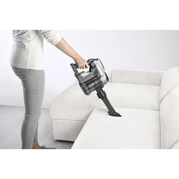 Aspirador 3 em 1: aspirador de vassoura, aspirador portátil e lança extra longa para áreas altas Aspirador de pó leve com bateria de lítio de 29,6 V Escova turbo motorizada. Removível e fácil de limpar 2 escovas: S-Fuzzy Brush e Multi-use Brush Sistema ciclônico. Ciclone de aço inoxidável Fácil manuseamento a 180º 2 velocidades: ECO / MAX Tanque com capacidade de 650ml e esvaziamento higiênico Touch & Clean Autonomia de 45 min com carga rápida (4h.) Indicador de status da bateria Tubo de extensão de alumínio de 70 cm Pega ergonômica Filtro HEPA na saída de ar: filtro de alta eficiência, lavável, capaz de reter 99,9% da poeira Filtros laváveis e fácil manutenção Inclui acessório de escova 2 em 1 + mini lança para estofamento e cantos One Touch: monte e remova acessórios com apenas um clique Indicador de carga da bateria Suporte de parede SIMPLE CHARGE Iluminação do Turbo Brush motorizado para detectar poeira em áreas escuras