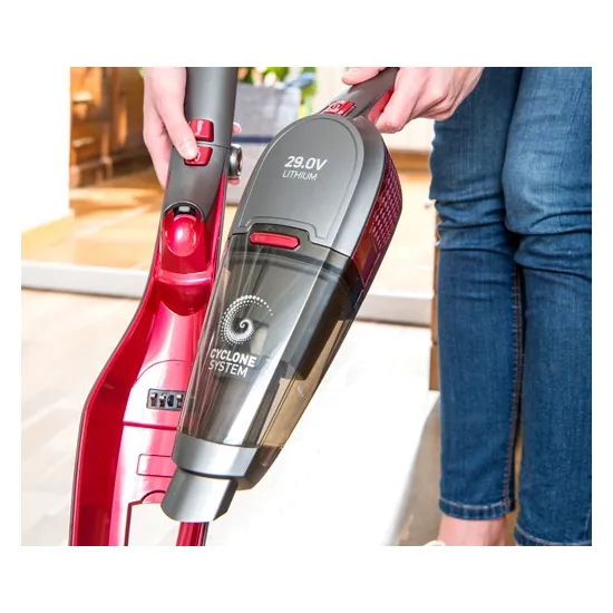 29V Escova TURBO BRUSH com iluminação. Perfeito mesmo em áreas escuras. 3 em 1: Aspirador para pisos duros, tapete e aspirador de mão integrado. Baterias de Lítio recarregáveis. Autonomia: 40 min. Duas velocidades: ECO e TURBO. Sistema de filtragem Cyclonic System. Depósito extraível de 0,7L. Base de carga com alojamento de acessórios. Indicador LED do bateria. Posição parking e cabo dobrável para fácil armazenamento. Acessórios: Ponta para locais de difícil acesso e escova de mobiliário e têxteis.