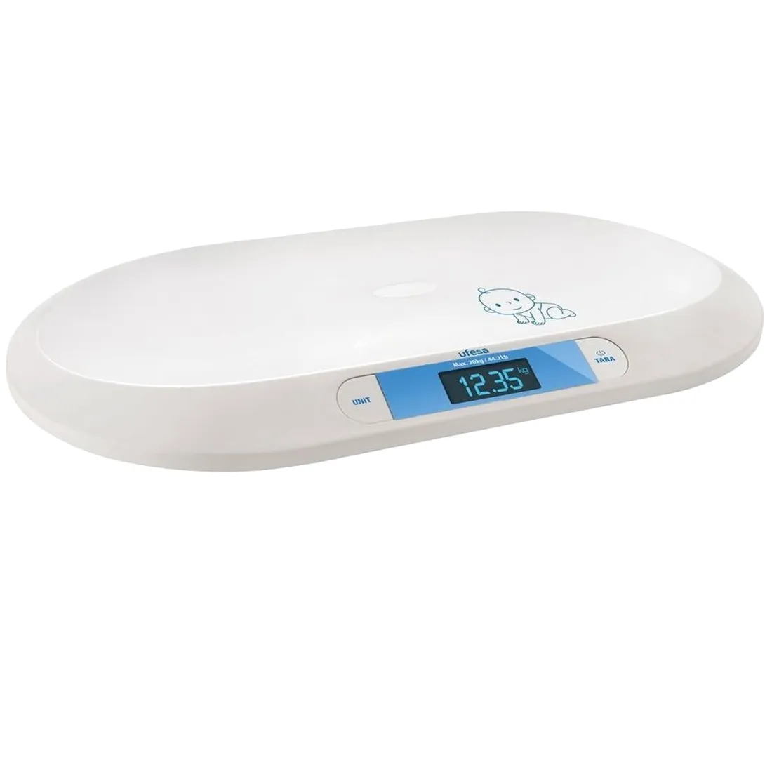 Potência: 3VDisplay XL retroiluminadoIndicador de sobrecargaBalança para bebé com design curvo fácil de limparDesign slim de alta precisãoMáx: 20kgPrecisão: 10gUnidades de medida: kg/lb/stFunção taraAuto stop