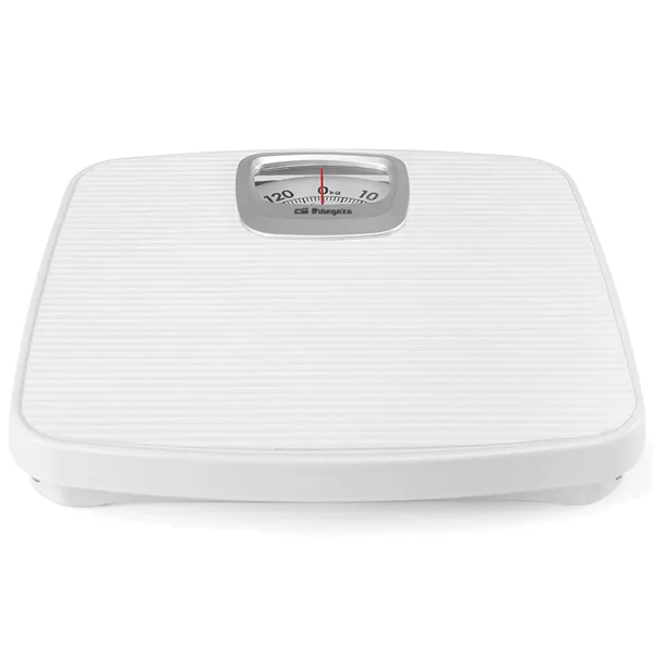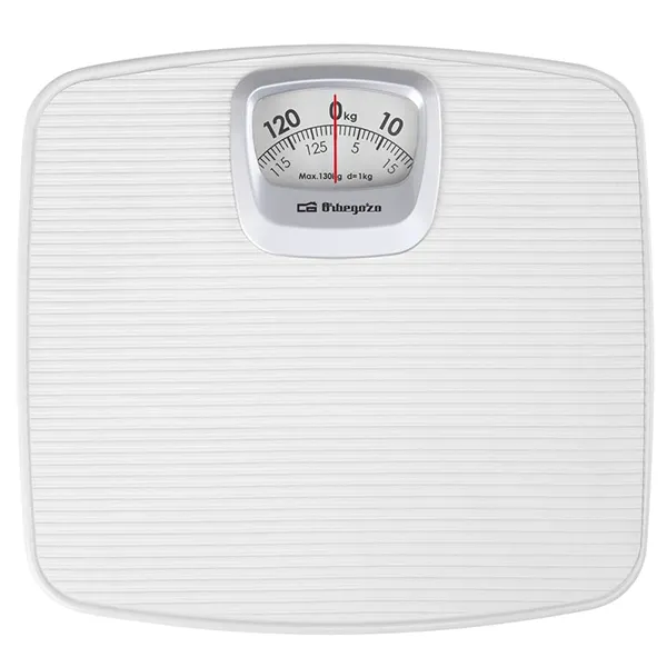 Superfície branca com design antiderrapante. Design adaptado aos espaços mais pequenos. Roda analógica para função de tara (ajuste para 0,0 kg). Capacidade máxima: 130kg. Escala: 1kg. Não precisa de baterias. Dimensões: 25,4 x 27,7 x 4,2 cm.