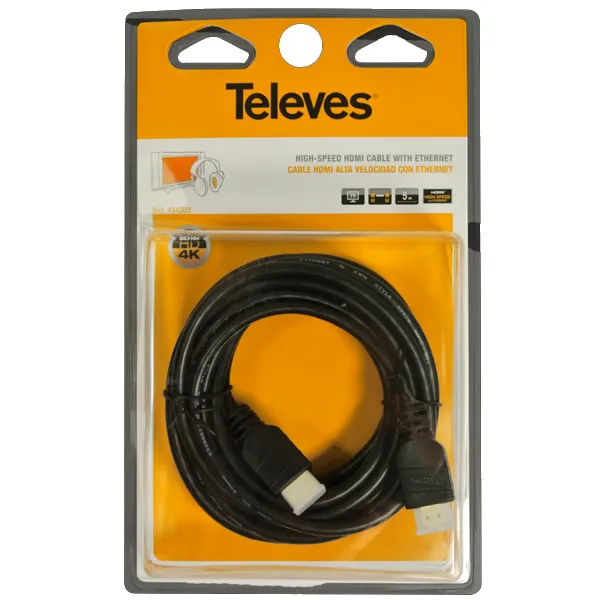 Cabo HDMI de alta qualidade para conectar a uma TV, qualquer equipamento electrónico (receptor de TV, computador portátil, consola de jogos…) e disfrutar os conteúdos em alta definição (HDTV).
