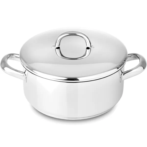Aço inoxidável (acabamento polido).Composto por: Caçarola com asas 24 e Tampa 24Diâmetro: 24cmCapacidade: 4,2ltsAltura: 10,1cmFunção: Cozer / Estufar / FerverFontes de calor: gás, elétrica, elétrica radiante, vitrocerâmica, induçãoTecnologia impact DiscPlus