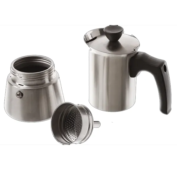 Cafeteira em aço inox Capacidade 200ml Base: Ø 9 cm Pega ergonómica com isolamento térmico