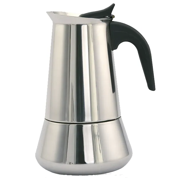 Cafeteira de aço inox. 2 chávenas. Utilização para: gás, elétrico, vitrocerâmica e indução