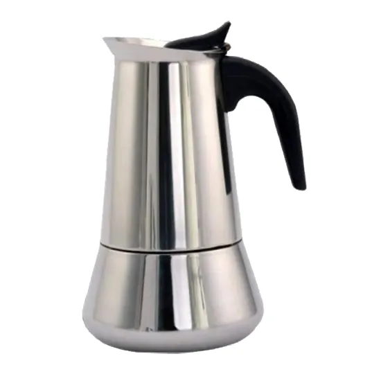 Cafeteira de aço inox. 6 chávenas. Utilização para: gás, elétrico, vitrocerâmica e indução