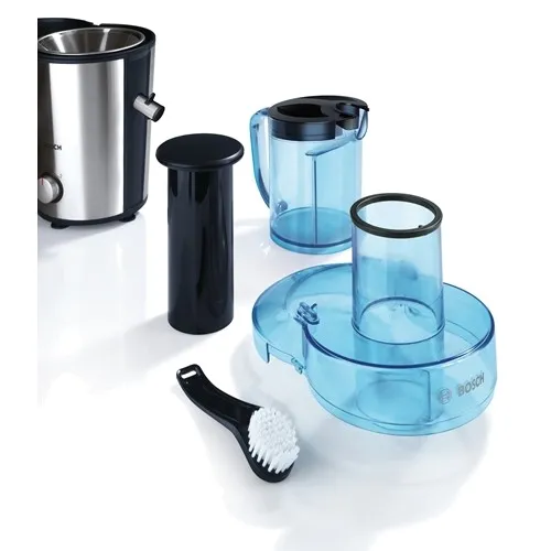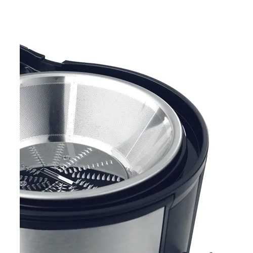 Motor de grande potência e resistência (700 W) Bocal de enchimento extra largo (73 mm) para uma preparação rápida e fácil de sumos de frutas ou vegetais sem ser necessário pré-cortar. Filtro em aço inoxidável para uma melhor extracção de sumo Fixadores laterais em Aluminio: grande resistência e durabilidade, sem fugas Uso universal para diferentes tipos de fruta e vegetais Saída de sumo com sistema antigotas para uma preparação mais limpa Recipiente grande e removível para a polpa, com capacidade de 2 litros Tubo de saída para o sumo e corpo em aço inoxidável de elevada qualidade 2 velocidades para diferentes tipos de frutas e vegetais Ejecção automática da polpa Easy storage: armazenamento simples e rápido do cabo Sistema de segurança: apenas funciona quando todas as peças se encontram devidamente colocadas e e desliga automaticamente se aberta durante a operação. Sem perigo de lesão, sem risco de salpicos Pés antideslizantes em borracha para máxima estabilidade Recipiente para sumo com 1,25 litros de capacidade e separador de espuma Escova incluída para uma limpeza mais fácil