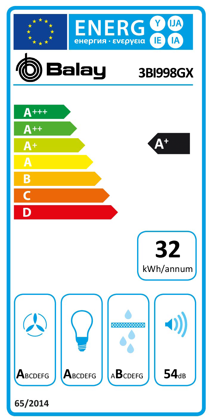 Potência acústica no nível máximo (2010/30/CE): 54 dB
