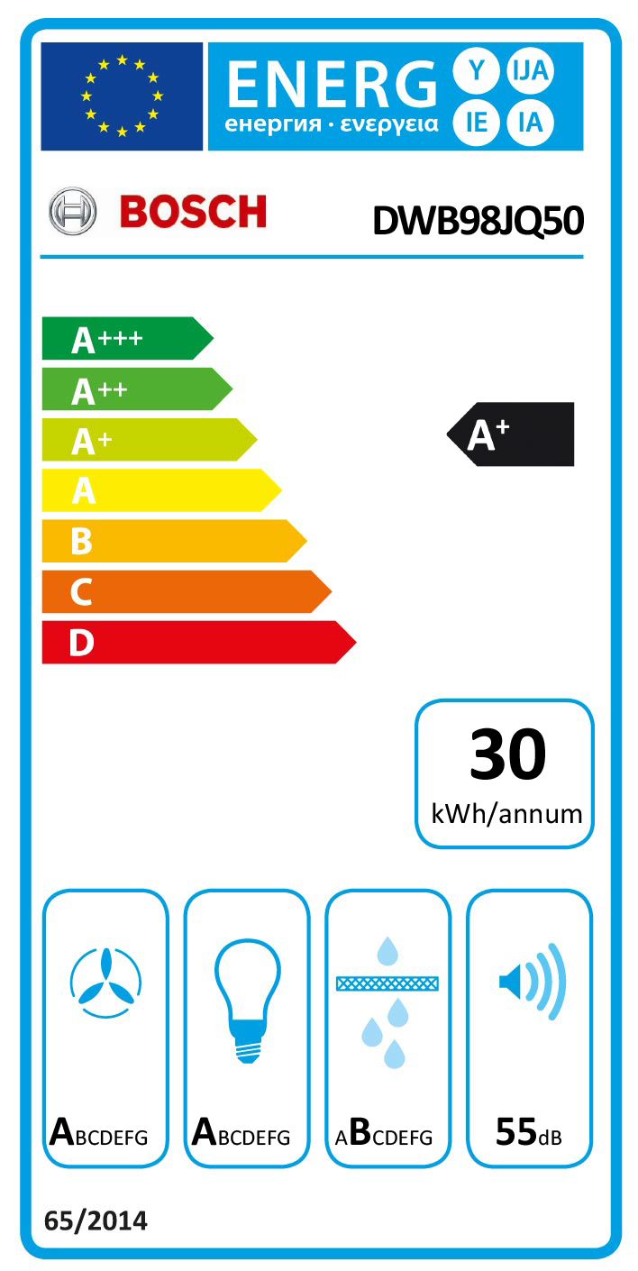 CLASSE DE EFICIÊNCIA ENERGÉTICA Classe de eficiência energética: A+ Consumo anual de energia: 29.9 kWh/ano Classe de eficiência de dinâmica dos fluidos: A Classe de eficiência de iluminação: A Classe de eficiência de filtragem de gorduras: B Ruído MIN./MAX. no nível normal: 46/55 dB