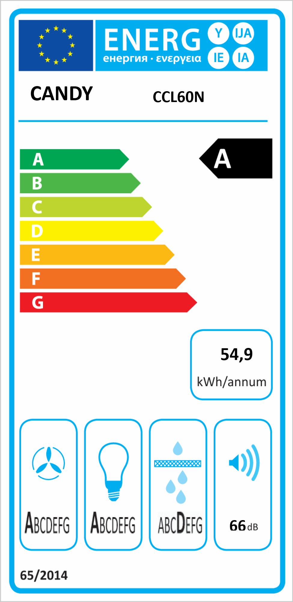 DESEMPENHOS Classe de eficiência energética: A Consumo anual de energia: 54,9 kWh Nível de ruído: 49 dBA Minimo fluxo de ar: 330 m3/h Máximo fluxo de ar: 625 m3/h Fluxo de ar na função Booster: 765 m3/h Nível de ruído EN 60704 – Minimo: 49 dBA Nível de ruído EN 60704 – Máximo: 66 dBA Nível de ruído EN 60704 – Booster: 70 dBA