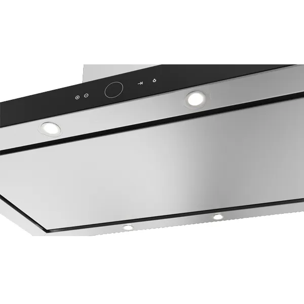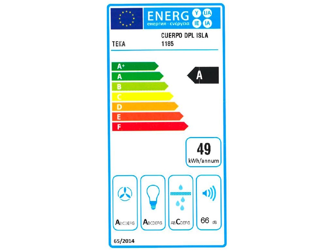 Chaminé decorativa de aspiração perimetral para instalação em ilha Painel de comandos Touch Control com display digital branco 4 lâmpadas LED 3 velocidades + 1 intensiva Indicador digital de velocidade selecionada Programação do tempo de aspiração Filtros metálicos interiores Sistema de aspiração perimetral “Contour” Painel rebatível em aço inoxidável com material fono absorvente Indicador luminoso de saturação de filtros Estrutura superior em vidro reforçado Motor blindado de dupla turbina Válvula antirretorno Capacidade de extração: min. 331 m3/h – máx. 782 m3/h Nível de potência sonora: min. 54 dBA – máx. 66 dBA Possibilidade de funcionamento em recirculação (SET 1/T + adaptador) Classificação energética: A Dimensões gerais (axlxp): 817-1117 x 1100 x 605mm Cor: Vidro Preto