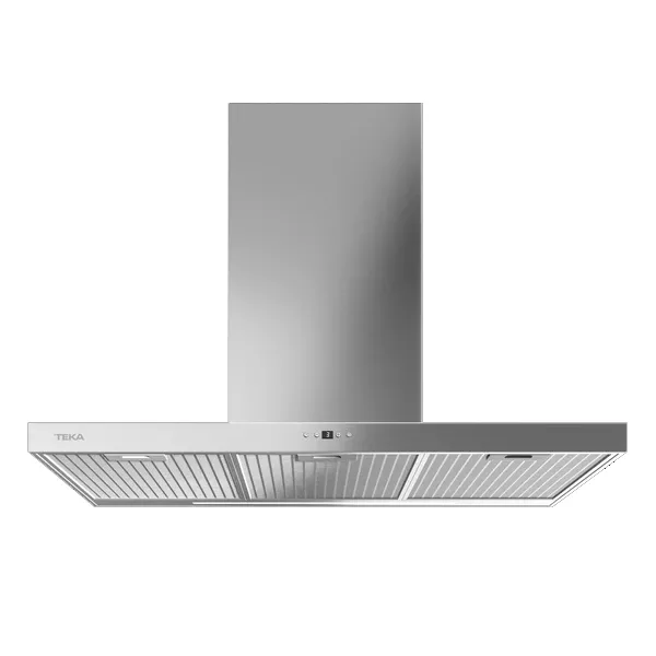 Decorativa parede. 90 cm largura Comando eletrónico retroiluminado 3 velocidades + 1 intensiva Funcionamento temporizado Barra de iluminação LED Motor ECOPOWER Extração min.: 305 m3/h – int.: 735 m3/h Nível de potência sonora: min. 54 dBA – máx. 68 dBA Classificação: A Dimensões (axlxp): 670-1000x900x480mm Cor: Inox
