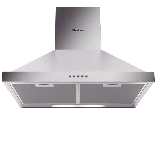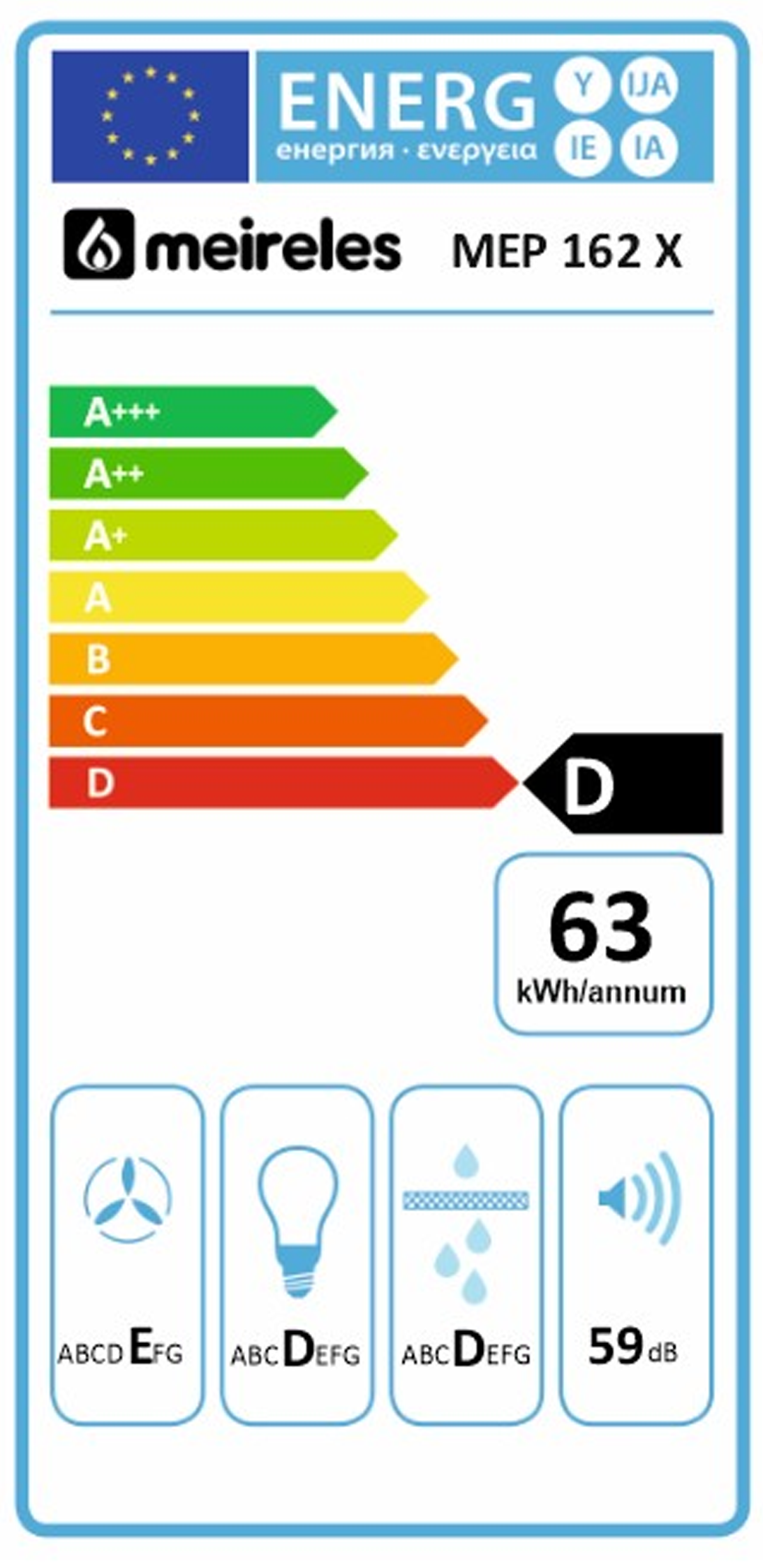 Exaustor decorativo de 60cm Aço inoxidável Comandos por botões Extracção máxima 300 m3/h Lâmpadas de LED Filtro de alumínio lavável Classe energética D