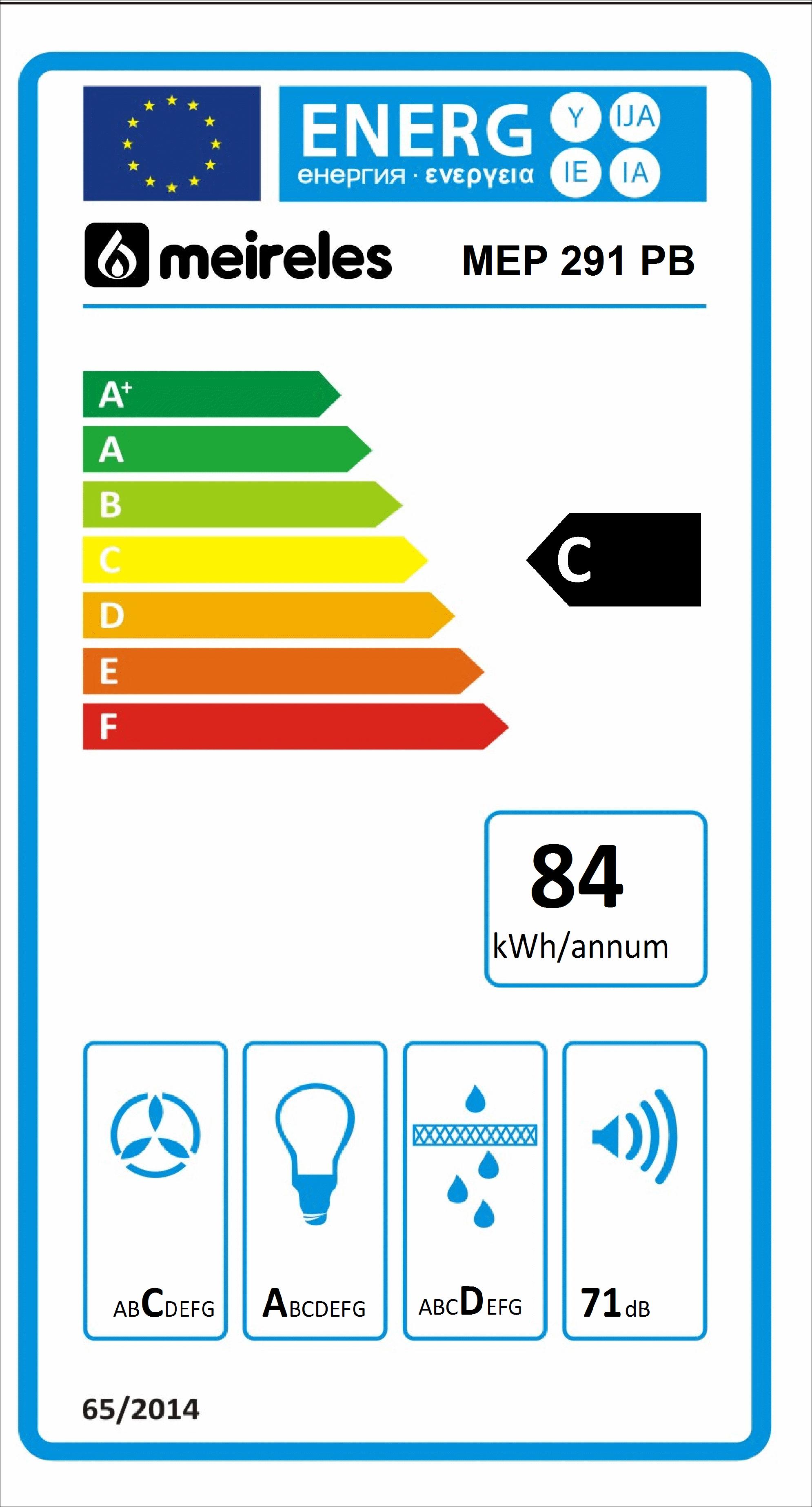Exaustor decorativo de 90cmComandos por botõesExtracção máxima 580 m3/hNivel de ruído de 50 a 71 (dBA)Motor tangencial2 Lâmpadas LEDFiltro de alumínio lavávelClasse energética C