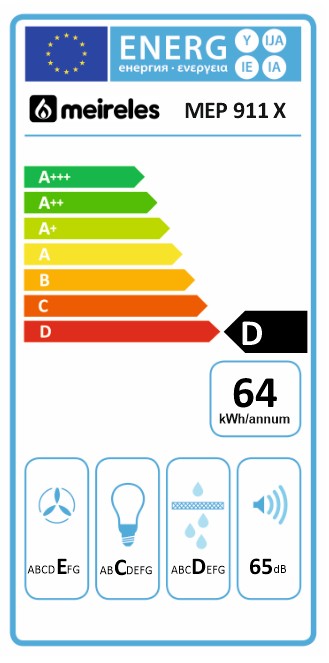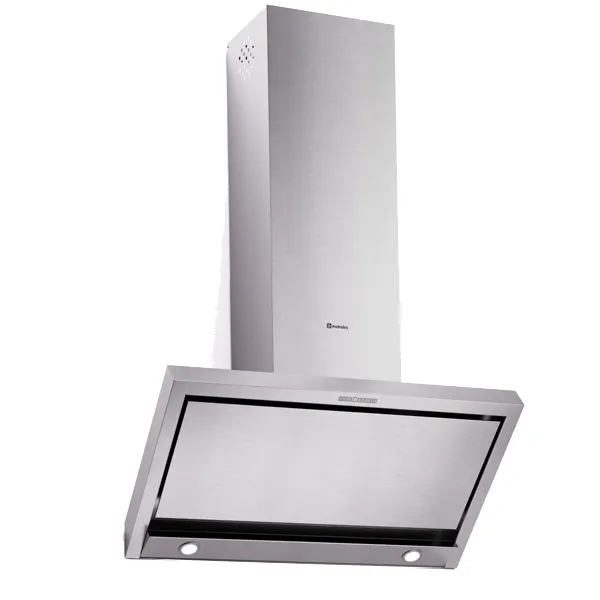 Chaminé decorativa de 90cm Aço inoxidável Comandos por botões Display LED Extracção máxima 455 m3/h Lâmpadas de LED Filtro de alumínio lavável Classe energética D