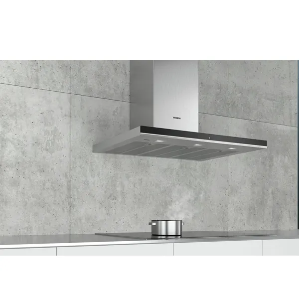 MEDIDAS (mm): Medidas do aparelho em saída de ar (AxLxP): 628-954 x 898 x 500 mm Medidas do aparelho em recirculação de ar (AxLxP): 628-1064 x 898 x 500 mm Medidas em recirculação com o módulo CleanAir (AxLxP): 689 x 898 x 500 mm – montagem com chaminé exterior 809-1139 x 898 x 500 mm – montagem com chaminé telescópica Diâmetro da conduta Ø 150 mm (Ø 120 mm incluído) Potência de ligação: 265 W Válvula anti-retorno incluída