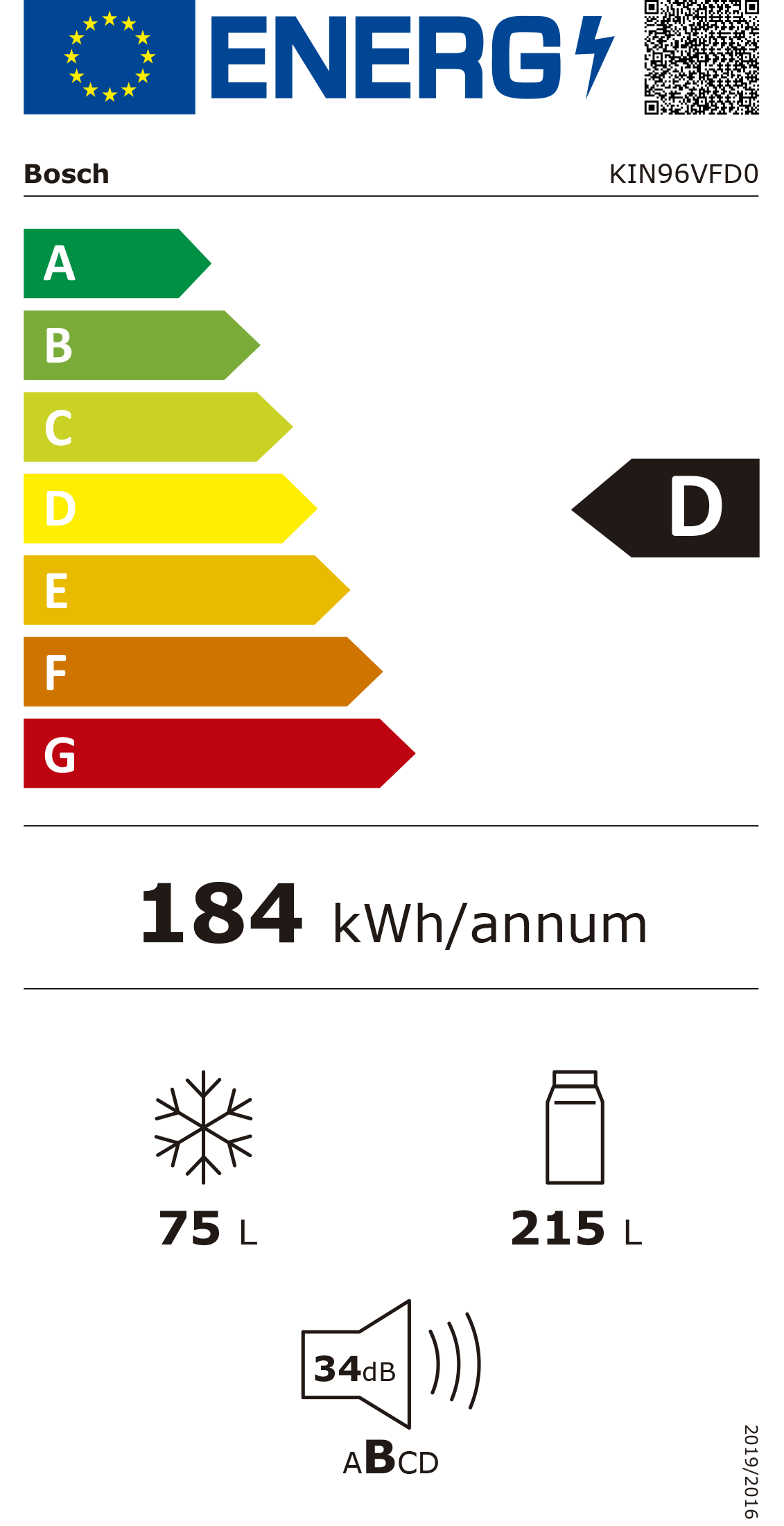 Consumo anual de energia (kWh/ano): 184 kWh/ano