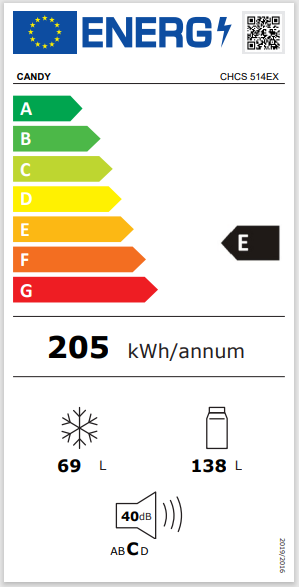 Consumo de energia anual: 205 kWh