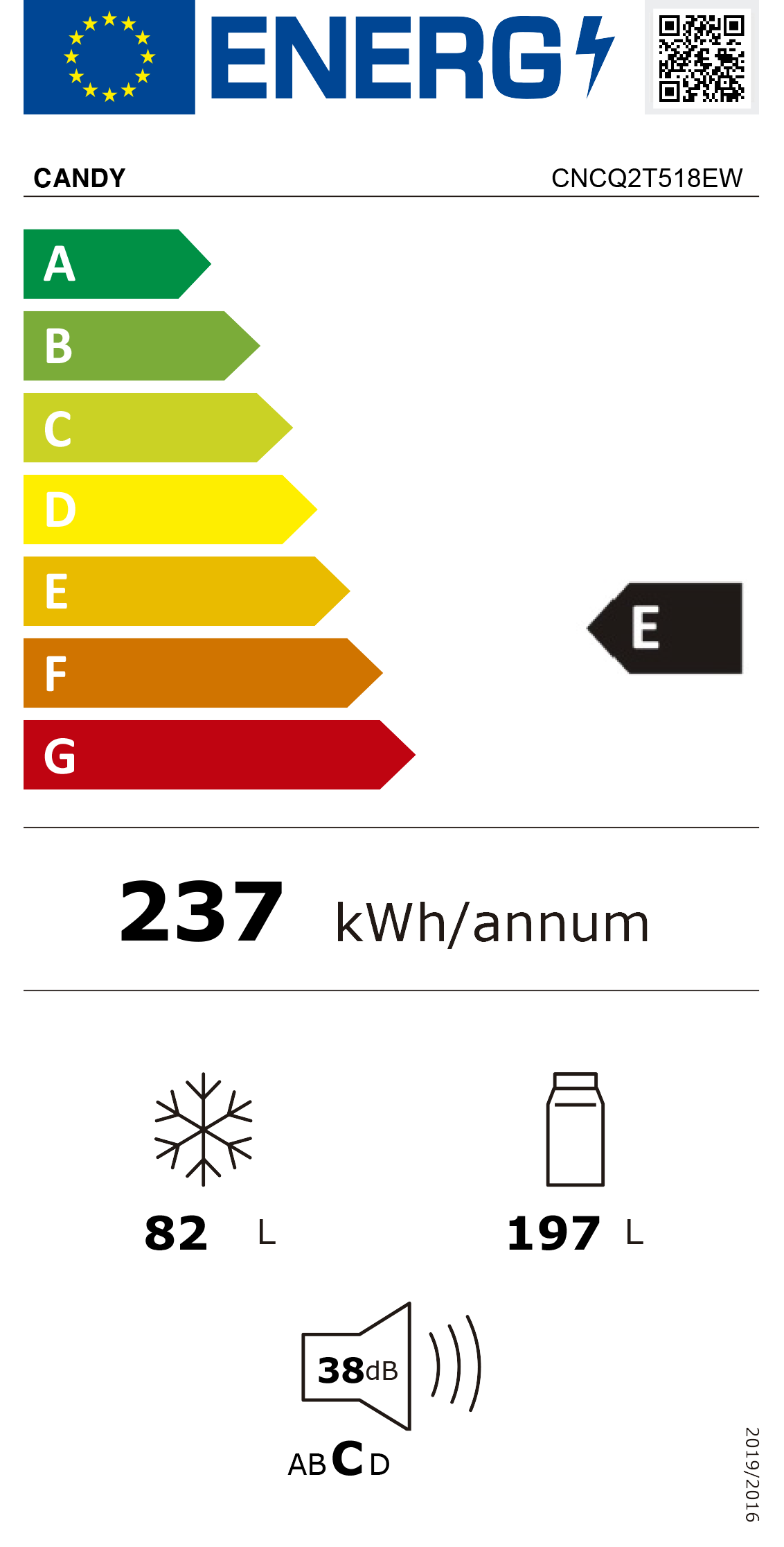 Consumo de energia anual: 237 kWh