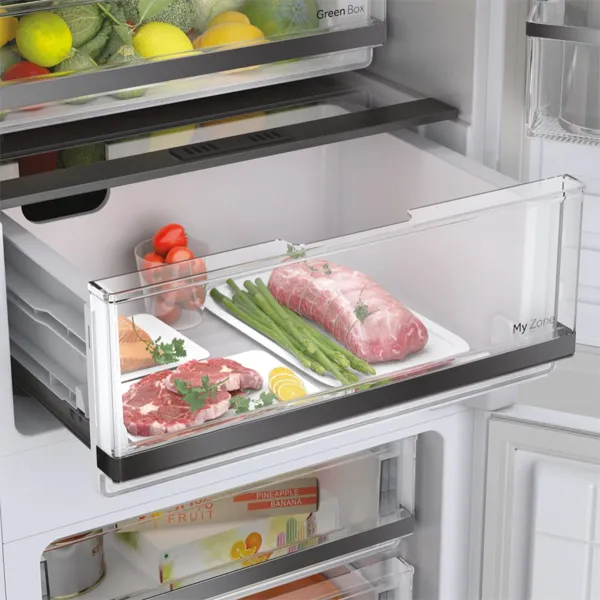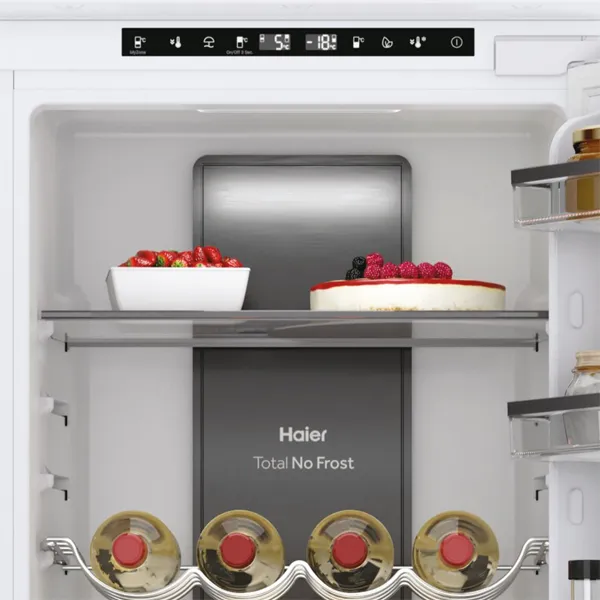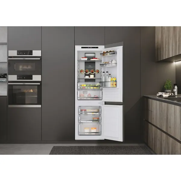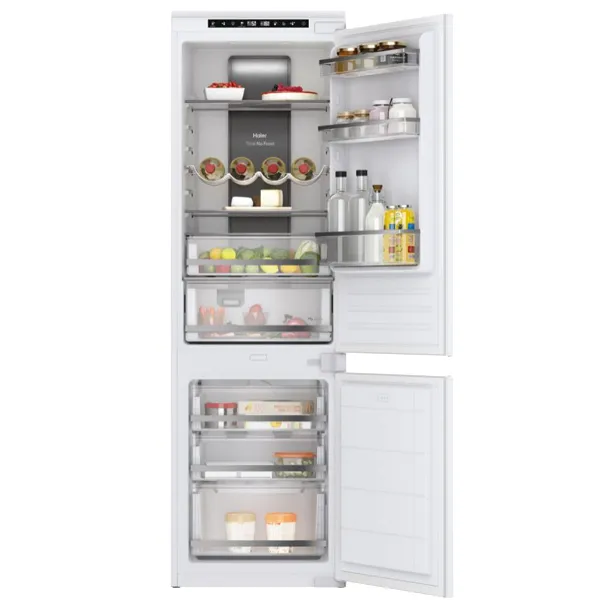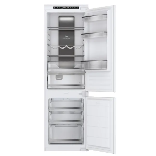 Instalação: Encastrável Categoria de Produto: Combinado Tipo de produto: 2 portas Tecnologia de frio: No Frost Coluna de circulação de ar Multiflow Processo de descongelação da secção do frigorífico: Automático Processo de descongelação da secção do congelador: Automática no frost Chiller – Fresh zone Corrente (A): 0.8 Frequência (Hz): 50 Voltagem (V): 220-240 Interface de comando: Eletrónico Localização dos comandos: Painel de comandos no exterior Temperatura ajustável: Frigorífico Congelação rápida Função Super refrigeração Cor/Material do corpo: Branco Dobradiça da porta: Right-mounted Número de gavetas de congelação: 3 Frigorífico com ventilador interno Material das prateleiras: Vidro Prateleiras da porta: Perfil em silver Material das prateleiras da porta: Plástico cristalino Acabamento das prateleiras: Perfil em silver Número total de prateleiras da porta: 3 Porta garrafas: Suporte de garrafas cromado Guias telescópicas: Na zona de temperatura de legumes e na gaveta de frutas e legumes Luz: Led Número de gavetas: 1 Número de suportes para os ovos: 1 transparente Número de covetes para gelo: 1 transparente Número de prateleiras ajustáveis no compartimento do frigorífico: 2+1+1 Classe climática: N Capacidade total do compartimento de refrigeração (l): 177 Capacidade total do compartimento de congelação (l): 64 Capacidade total (l): 241 Classificação por estrelas: 4 Autonomia em caso de falha de energia (h): 10 Capacidade de congelação (kg): 3,5 Altura: 1769mm Largura: 540mm Profundidade: 550mm