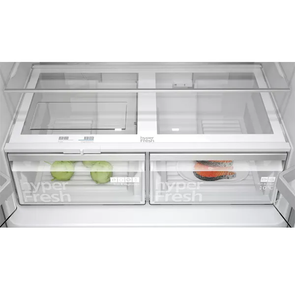 Gaveta hyperFresh com controlo de humidade e railes – ideal para frutas e legumes, Gaveta hyperFresh ◄0°C► – carne e peixe frescos durante mais tempo