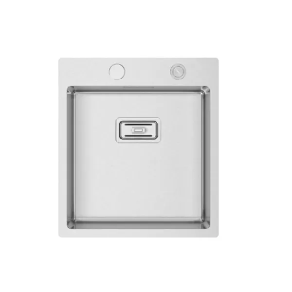 Medida externa: 450x505mmMedida das cubas: 400x400mmProfundidade: 200mmFornecido Com: Sifão/Válvula automática FIRST 0212246STamanho do móvel: 500mmAcabamento: EscovadoAplicação: Superior e à face