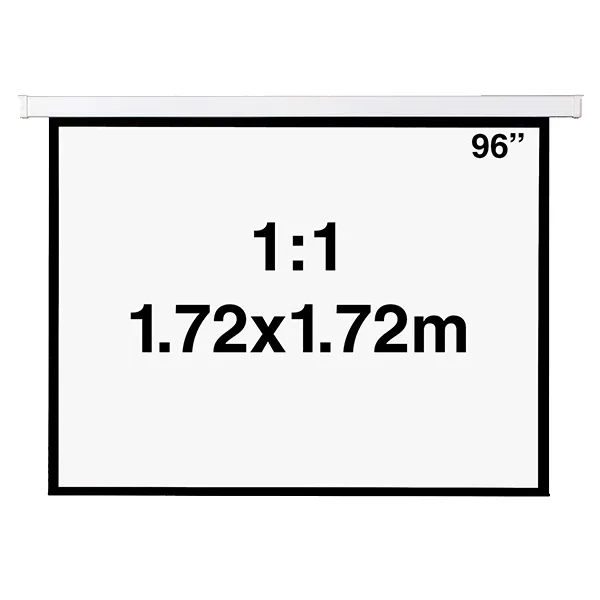 Suspensão Manual Possibilidade de fixação à parede e ao teto Blackout (costas pretas) 4 Black Borders (moldura preta) Tela Matte White Travamento de 15 em 15cm Relação 1:1 Medida: 96 Dimensão Imagem LxA: 1720x1720mm Dimensão Tela LxA: 1800x1990mm DROP: 4cm