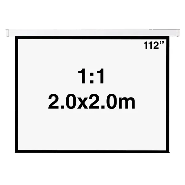 Suspensão Manual Possibilidade de fixação à parede e ao teto Blackout (costas pretas) 4 Black Borders (moldura preta) Tela Matte White Travamento de 15 em 15cm Relação 1:1 Medida: 112 Dimensão Imagem LxA: 2000x2000mm Dimensão Tela LxA: 2080x2270mm DROP: 4cm