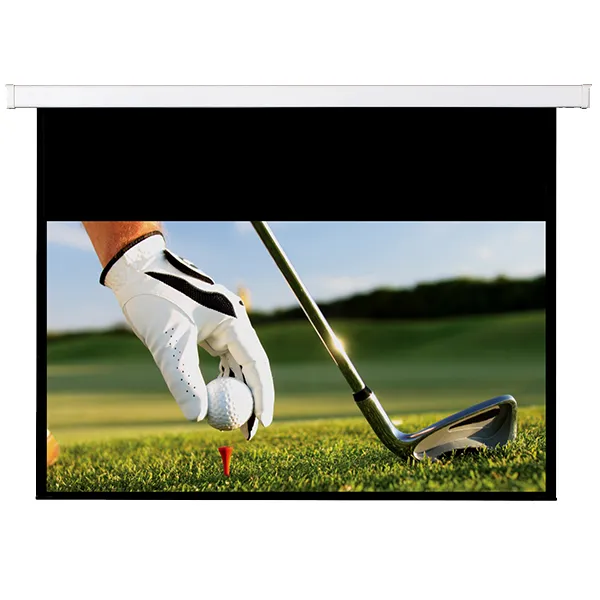 Suspensão Manual Possibilidade de fixação à parede e ao teto Blackout (costas pretas) 4 Black Borders (moldura preta) Tela Matte White Travamento de 15 em 15cm Relação: 16:9 Medida: 108“ Dimensão Imagem LxA: 2400x1350mm Dimensão Tela LxA: 2480x1655mm DROP: 4cm TOP DROP: 30cm