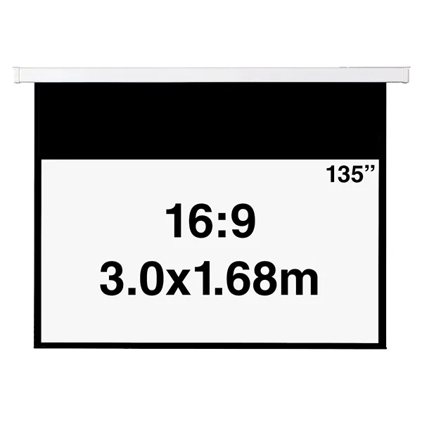 Suspensão Manual Possibilidade de fixação à parede e ao teto Blackout (costas pretas) 4 Black Borders (moldura preta) Tela Matte White Travamento de 15 em 15cm Relação: 16:9 Medida: 135 Dimensão Imagem LxA: 3000x1680mm Dimensão Tela LxA: 3080x1985mm DROP: 4cm TOP DROP: 30cm