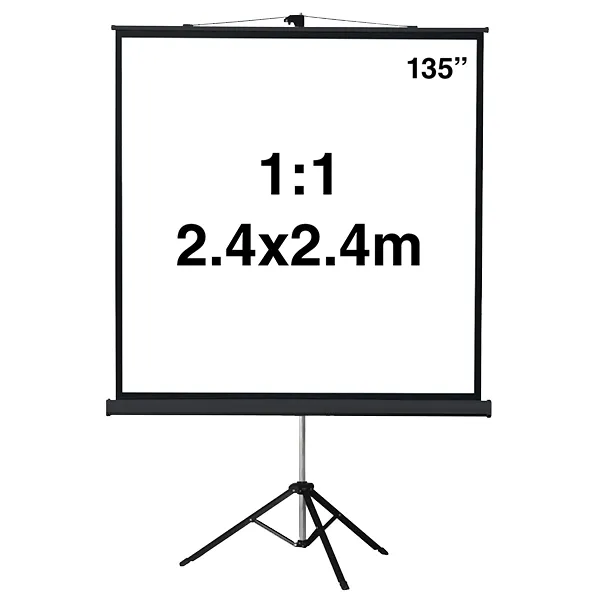 Tripé profissionalBlackout (costas pretas)4 black borders (moldura preta)Tela Matte WhiteCorreção keystoneTravamento automáticoRelação: 1:1Medida: 135Dimensão Imagem LxA: 2400X2400mmDimensão Tela LxA: 2480X2710mmDROP: 4cm