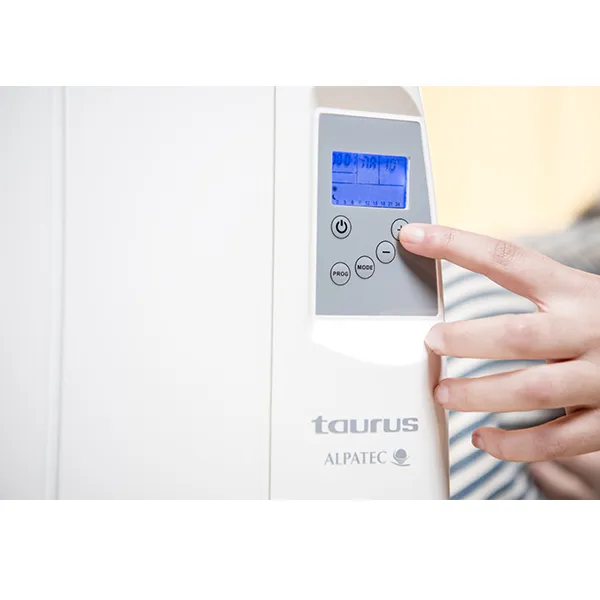 1200W 2 modos de funcionamento: conforto e económico Temperatura ajustável de 10 a 35°C Sem fluidos: tecnología seca Programação diária e semanal Incluem rodas e suporte de parede Sensor de janela aberta: Desliga-se em caso de descida brusca da temperatura dentro da divisão Ecrão LCD retroiluminado Bloqueio do selector Interruptor de funcionamento Dimensões do produto: 66.5 x 33.5 x 65.5cm Recomendado para divisões até 12m2