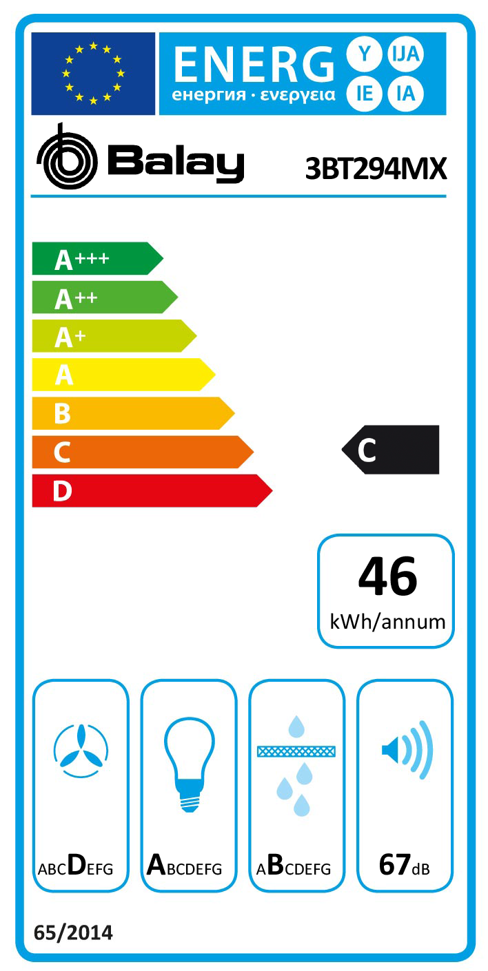Tipo de produto: 90 cm Cor / Material do corpo: Metálico prateado Tipo de instalação: Encastre Modo funcionamento: Convertível Potência total dos motores: 105 W Tipo de definição de controlo e de indicadores: Selector de balanço Número de velocidades: 3 Extracção máxima de ar de saída: 383 m³/h Potência acústica à velocidade máx. (2010/30/CE): 67 dB Saída máxima do ar de recirculação: 257 m³/h Potência sonora na velocidade máxima (recirculação): 69 dB Material do filtro de gordura: Alumínio lavável Classe de eficiência energética: C Consumo total de energia anual: 46,1 kWh/ano Diâmetro da saída de ar: 120 / 150 mm Cor / Material do corpo: Metálico prateado Material do filtro de gordura: Alumínio lavável Tipo do filtro da graxa: Cassete Multi-camada Tipo de instalação: Encastre Material do corpo: galvanizado Localização do motor: Motor integrado no corpo do exaustor Número de motores: 1 Modo funcionamento: Convertível Tipologia: Pull-out Classificação da ligação: 108 W Comprimento do cabo de alimentação eléctrica: 175 cm Frequência: 50 Hz Potência total das lâmpadas: 3 W Potência total dos motores: 105 W Voltagem: 220-240 V