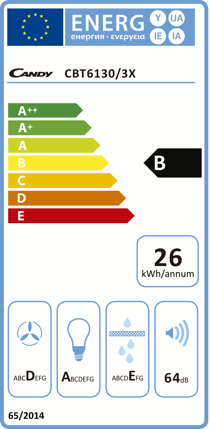 DESEMPENHOS Classe de eficiência energética: B Consumo anual de energia: 26 kWh Nível de ruído: 64 dBA Minimo fluxo de ar: 211,6 m3/h Máximo fluxo de ar: 329,6 m3/h Nível de ruído EN 60704 – Minimo: 53 dBA Nível de ruído EN 60704 – Máximo: 64 dBA