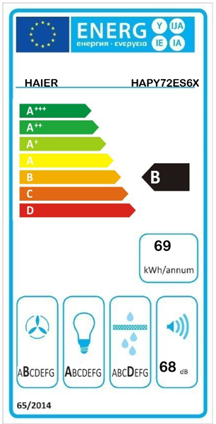 Tipo: Exaustor Integrado Largura: 72 cm Acabamento: Inox Comandos: Eletrónicos Timer Velocidades: 3+1 Booster Filtros de metal laváveis: 1 x Alumínio 2 Filtros de carvão Nº de motores: 1 Potência do motor: 250 W Iluminação: 1 X 7 W (LED em branco) Potência total: 257 W Diâmetro do tubo (saída de ar): 150 mm Redução adaptador: 150-120 mm Válvula anti-retorno Tensão: 220-240 V Frequência: 50/60 Hz Classe de eficiência energética: B Consumo anual de energia: 68,9 kWh Capacidade extração (EN61591) – Mínimo: 255 m3/h Capacidade extração (EN61591) – Máximo: 550 m3/h Capacidade extração (EN61591) – Boost: 650 m3/h Capacidade extração (EN61591) – 1ª velocidade (extração/recirculação): 256 m3/h / 256 m3/h Capacidade extração (EN61591) – 2ª velocidade (extração/recirculação): 401 m3/h / 367 m3/h Capacidade extração (EN61591) – 3ª velocidade (extração/recirculação): 558 m3/h / 414 m3/h Capacidade extração (EN61591) – Boost (extração/recirculação): 650 m3/h / 433 m3/h Nível de ruído EN 60704 – Minimo: 49 dBA Nível de ruído EN 60704 – Máximo: 65 dBA Nível de ruído EN 60704 – 1ª velocidade (extração/recirculação): 47 dBA / 59 dBA Nível de ruído EN 60704 – 2ª velocidade (extração/recirculação): 56 dBA / 67 dBA Nível de ruído EN 60704 – 3ª velocidade (extração/recirculação): 56 dBA / 67 dBA Nível de ruído EN 60704 – 4ª velocidade (extração/recirculação): 47 dBA / 59 dBA Dimensões do produto AxLxP: 30,3×71,4/69,3×28,2/26 cm Peso líquido do produto: 11,3 Kg Dimensões necessárias para o encastre LxP: 30,3×71,4/69,3×28,2/26 cm