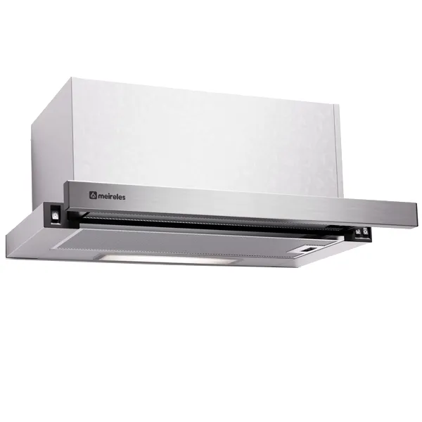 Exaustor telescópico de 60cm Aço inoxidável Comandos por guia com botões escondidos Extracção máxima 700 m3/h Lâmpadas de LED Filtro de alumínio lavável Classe energética C